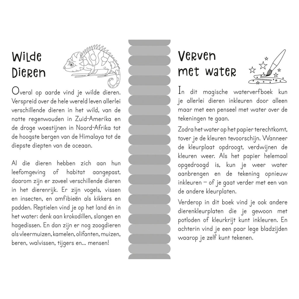 Maak vrolijk gekleurde tekeningen met dit magische waterkleurboek. Verf de tekeningen met water, laat ze opdrogen en verf ze opnieuw! In dit boek vind je heel veel tekeningen die je kunt inkleuren, leuke feitjes en lege bladzijden waarop je zelf de mooiste tekeningen kunt maken!