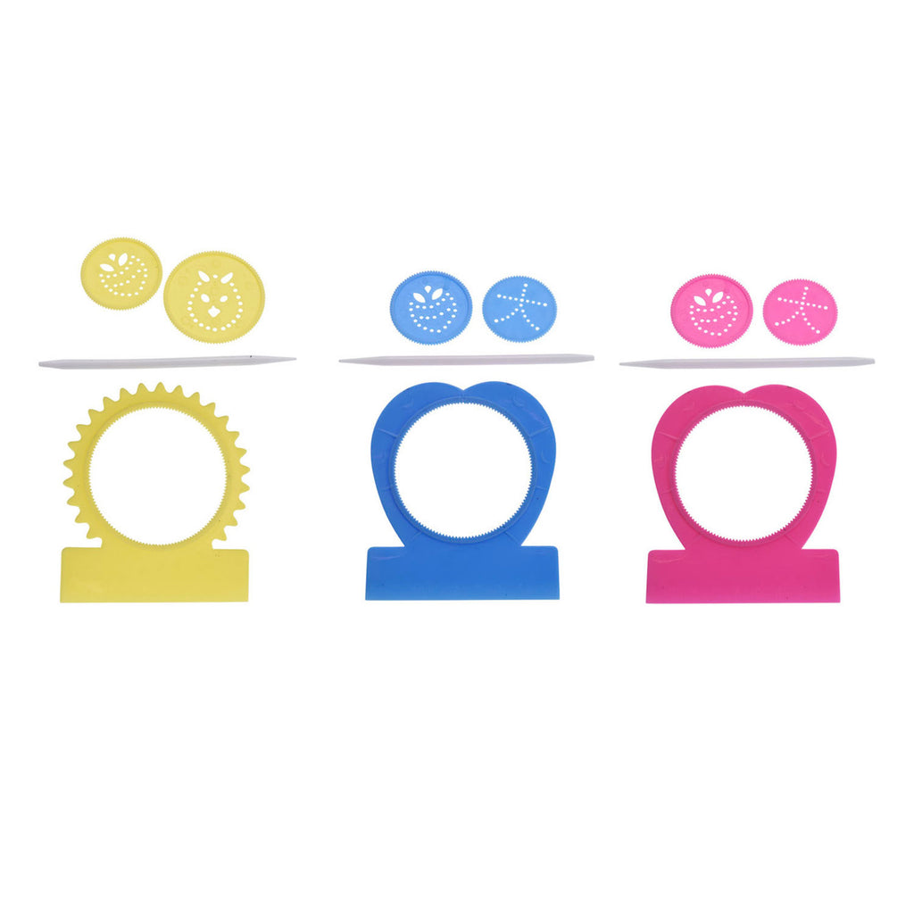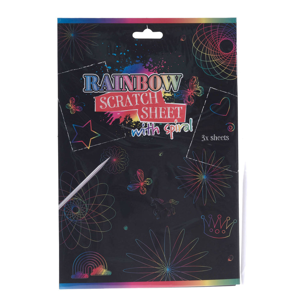 Maak de mooiste vormen op de magische krasvellen met de spiraal. Zet de kras pen op verschillende punten in de cirkel zodat er prachtige vormen en kleuren ontstaan doordat het zwart verdwijnt. De set bevat drie krasvallen, 1 spiraal met twee vormpjes en 1 pen. Afmetingen krasvel: 29 x 27 cm.