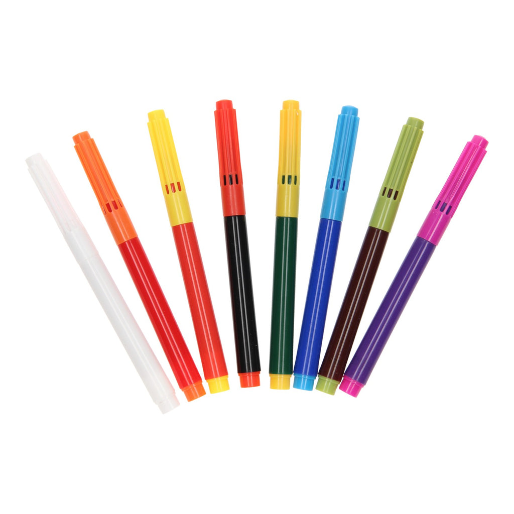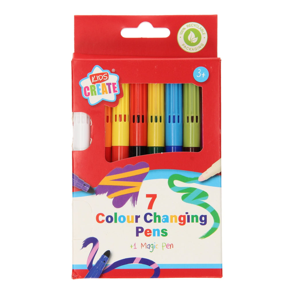 Met deze magische pennen maak jij de mooiste creaties! De stiften veranderen van kleur wanneer je er met de magische stift overheen kleurt. Set bestaat uit 7 kleurveranderende stiften.