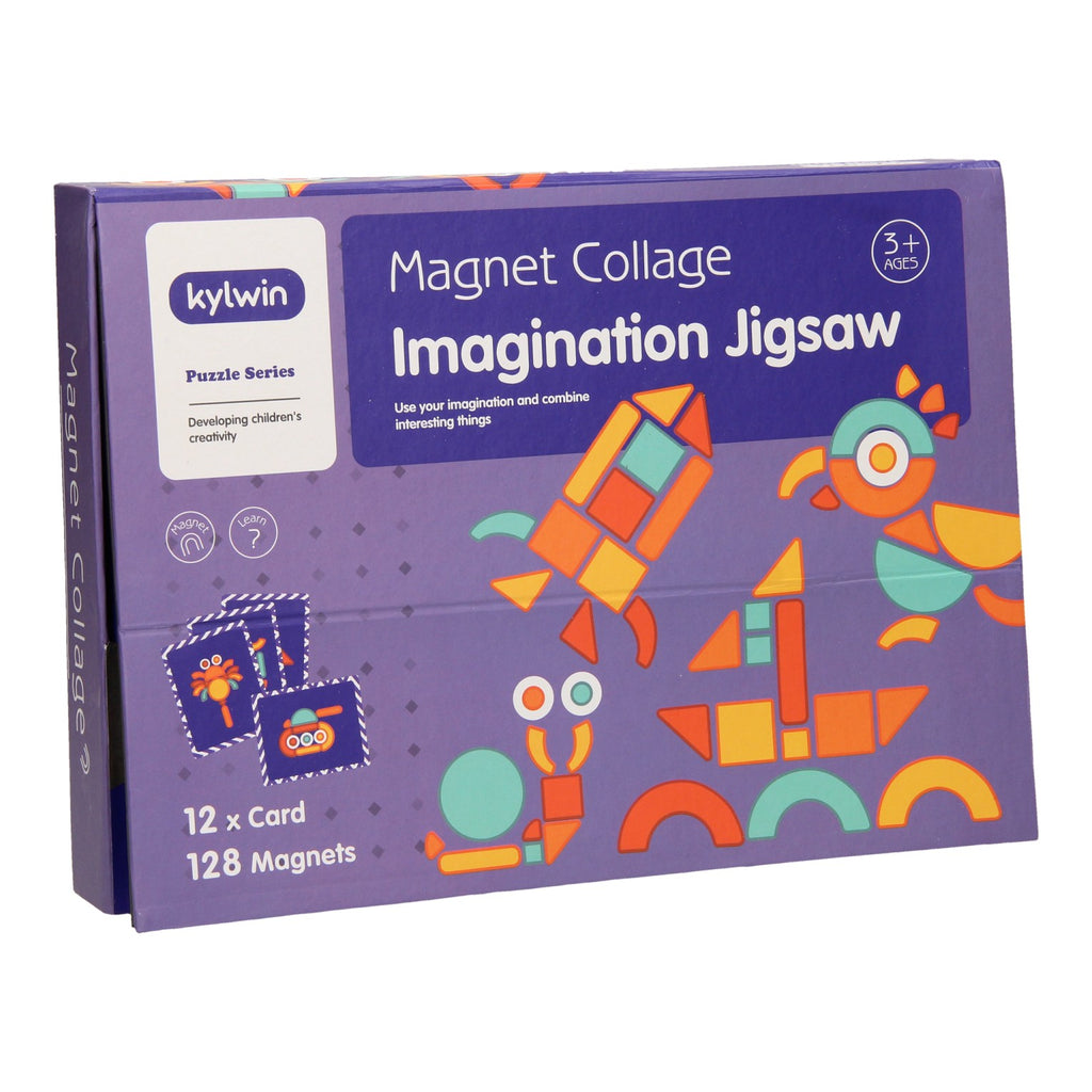 Magneetset Vormen met Kaarten. Op de kaart staat het figuur wat je na kunt maken, zoek er de juiste vormen bij en plak deze op het magnetische bord. Geschikt van 3 tot 6 jaar.