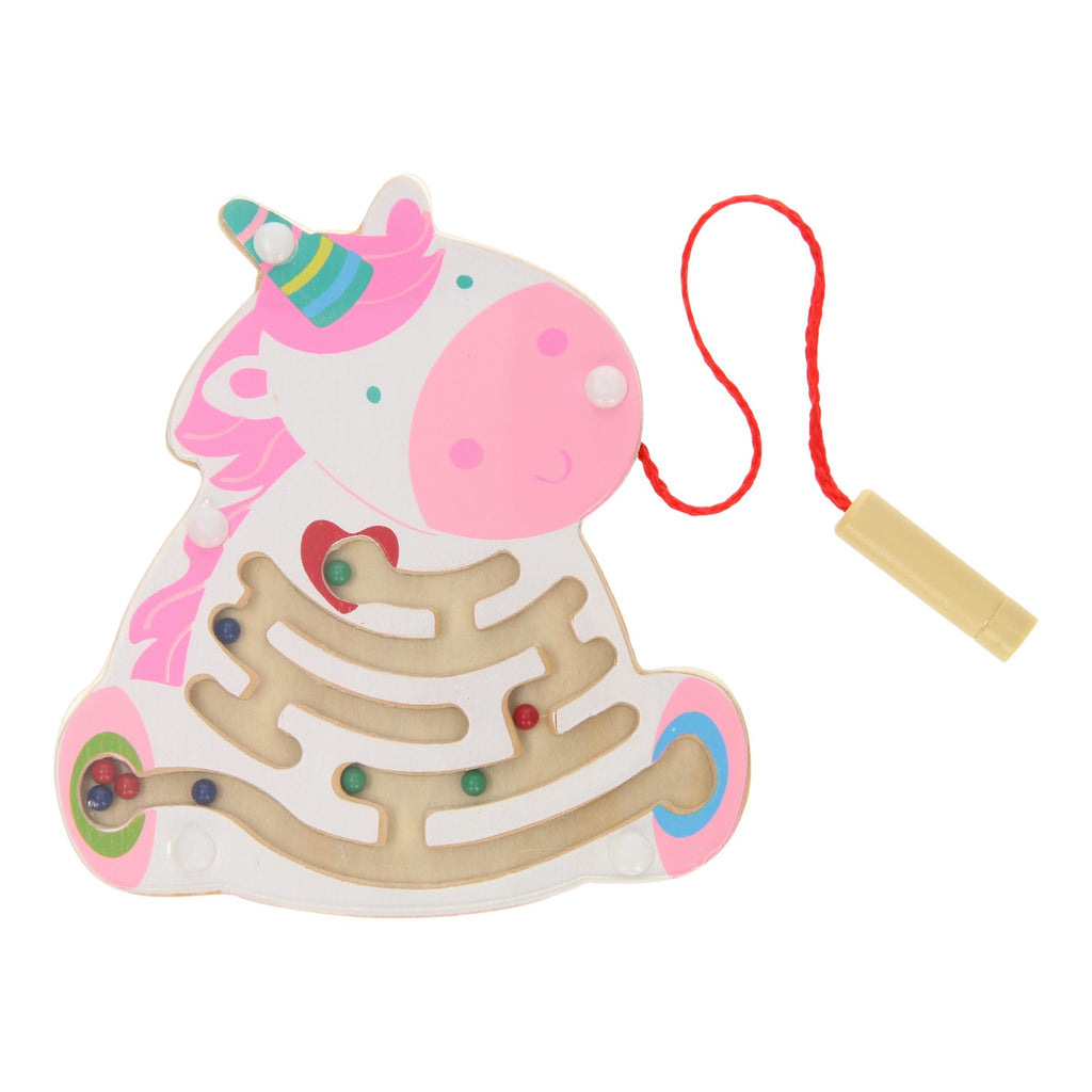 Loots de balletjes door het Houten Magnetisch Doolhof Eenhoorn! Pak de houten staaf vast en houd hem dicht op een of meerdere balletjes. Probeer zo voorzichtig en behendig mogelijk de balletjes naar het eindpunt van de unicorn te sturen. Het Houten Magnetisch Doolhof Eenhoorn is leuk speelgoed voor op de achterbank!