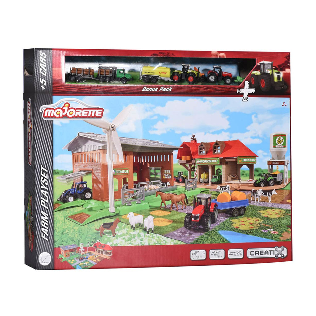 Speel het boerderijleven na met de Majorette Creatix Boerderij met Voertuigen. Voeder de dieren of verkoop de producten van het land in jouw biowinkel. Deze boerderijset bestaat uit een stal, een boerderij, een biowinkeltje, een silo, een windmolen, een stuk land met allerlei gewassen, boerderijdiertjes en wel 5 boerderijvoertuigen. Geschikt vanaf 5 jaar.