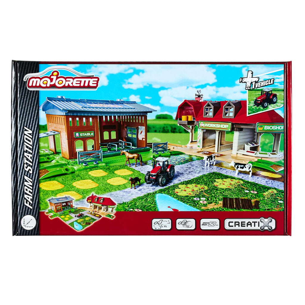 Ontdek het leven op de boerderij en neem actief deel aan het landbouwleven. Op het erf van deze Majorette Farm Station valt altijd wat te beleven terwijl de tractor op het land werkt.