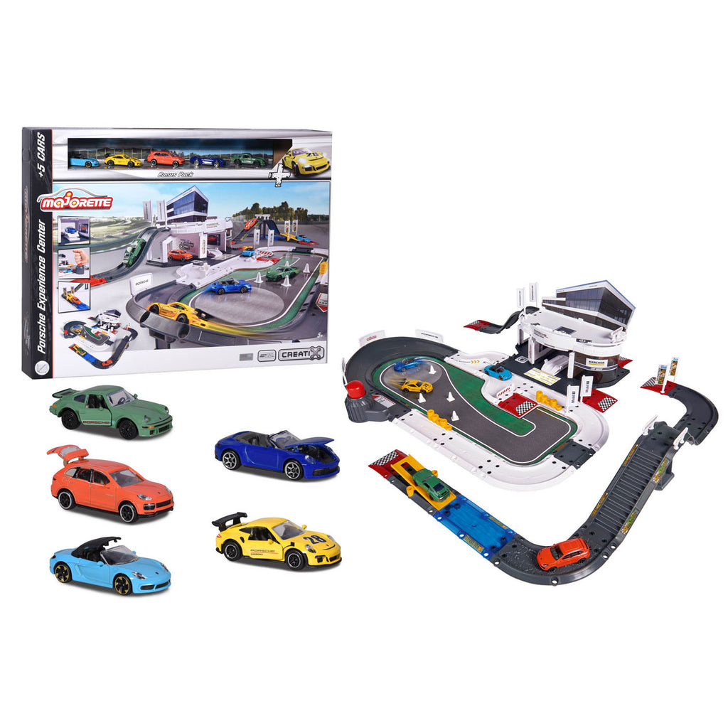 Deze Majorette Porsche Exprerience Center is gebaseerd op een echt Porsche Experience Center. Het Experience Center bestaat uit meer dan 60 onderdelen en heeft o.a. een laadstation voor hybride voertuigen, een hefplatform voor snelle reparaties en een carwash. Op de parkeerplaats van de eerste verdieping van het Experience Center zijn vier parkeerplaatsen te vinden. Inclusief vijf gegoten speelgoedauto's met vrijloopvering. De set bevat de volgende modellen: Porsche Cayenne turbo E-hybride, Porsche 934, Porsche Boxster 718, Porsche 911 GT3 RS Experience en Porsche 911 Carrera S Cabriolet.