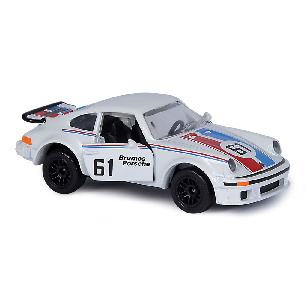 Deze set met vijf Porsche Voertuigen is onmisbaar voor kleine Porsche fans! In de set zit een Porsche 911 GT3 RS, de Porsche 718 Boxster, de Porsche Panamera Turbo en twee exclusieve modellen: de Porsche 911 GT3 RS Weissach en de klassieke Porsche 934 Brumos. Leuk voor in de verzamelkast of om gewoon lekker mee te spelen. De Porsche Voertuigen hebben een gegoten behuizing, rollende wielen en een vering. De voertuigen hebben een lengte van 7,5 centimeter.