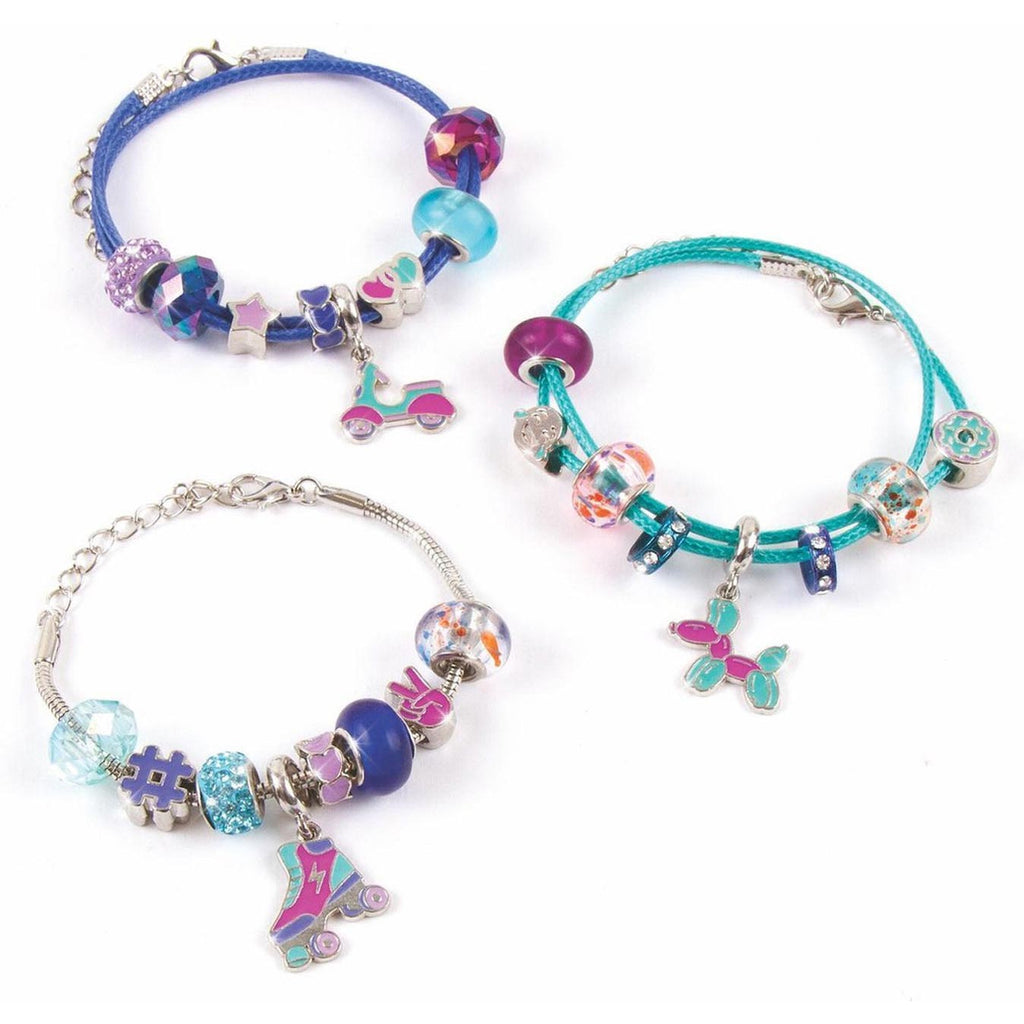 Jonge ontwerpers kunnen hun hart ophalen met dit 'Do It Yourself' Halo/Bedel armbandjes True Blue pakket. Mix & Match de verschillende vrolijk gekleurde halo kralen, sprankelende faux-kristallen en leuke bedeltjes en maak 3 fantastische, unieke armbandjes! Ga naar www.makeitrealplay.com en leer alles over dit pakket.