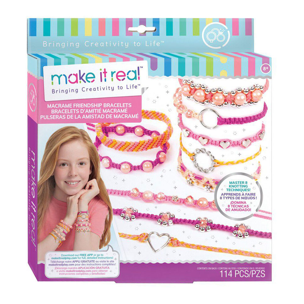 Jonge ontwerpers kunnen hun hart ophalen met dit 'Do It Yourself' Macramé Vriendschapsarmbanden pakket. Maak je eigen armbanden met wel 8 verschillende technieken! Mix & Match de verschillende vrolijk gekleurde kralen en garen en maak een uniek armbandje voor al jouw vriendinnen! Ga naar www.makeitrealplay.com en leer alles over dit pakket.