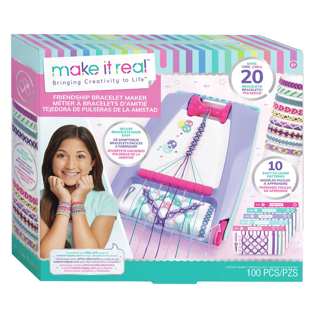 Creativiteit is grenzeloos met deze Vriendschapsarmbanden maker met alles wat je nodig hebt om tot 20 verschillende armbanden te maken! In de verpakking vind je een handige tool om je armbanden op te knopen. Neem 1 van de 10 armbandjes sjablonen, bevestig deze op de tool en zoek mooie kleuren touwtjes en kraaltjes uit. Maak nu een armband voor jezelf, vriendinnen of familie! Eindeloos speelplezier! Afmeting verpakking: 37x10x27 cm (lxdxh). Leeftijdsindicatie: 6 jaar+.