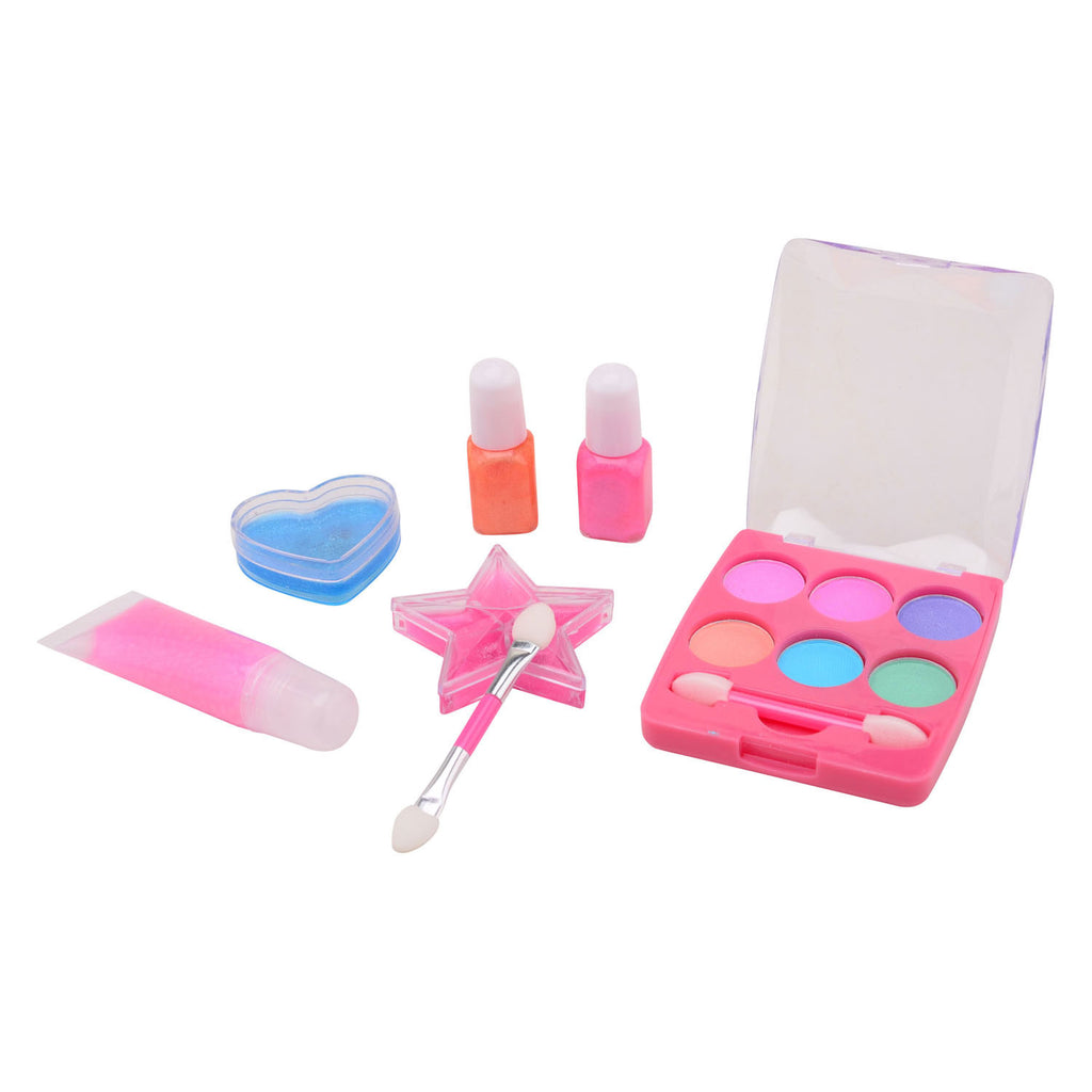 Make-upset voor kinderen met o.a. nagellak, lippenbalsem en verschillende kleuren oogschaduw. De make-up is kindvriendelijk en vegan. Niet geschikt voor kinderen jonger dan 3 jaar.