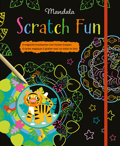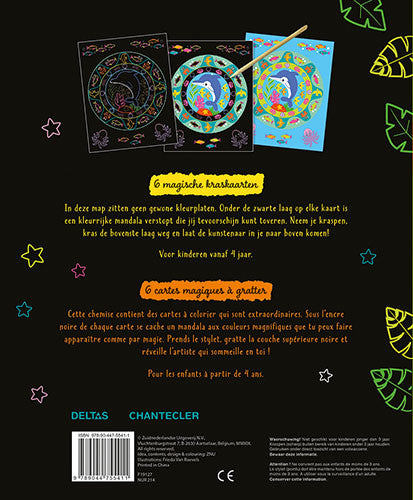In deze map zitten geen gewone kleurplaten. Onder de zwarte laag op elke kaart is een kleurrijke mandala verstopt die jij tevoorschijn kunt toveren. Neem je kraspen, kras de bovenste laag weg en laat de kunstenaar in je naar boven komen!