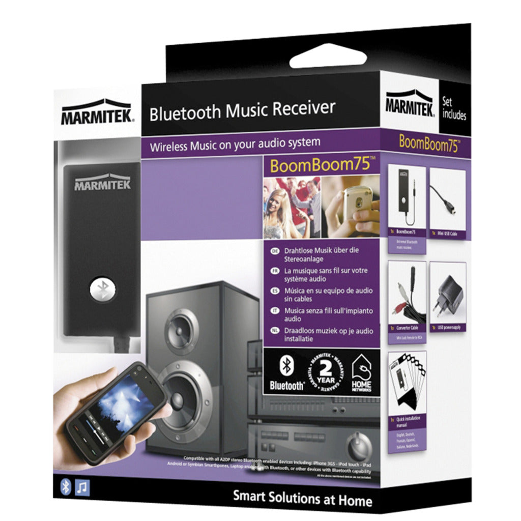 - De BoomBoom75 Bluetooth Music Receiver werkt met elke audio installatie, iPhone dock of radio/cd-speler met aux-in, line-in of mp3-link aansluiting