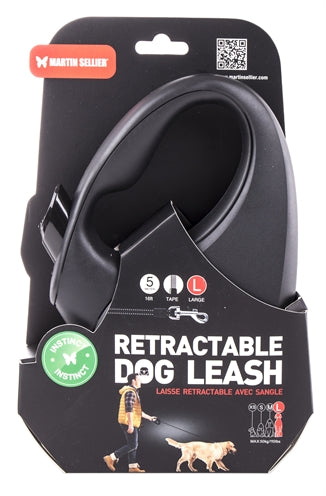De Martin Rollijn Instinct Tape Zwart L 5 meter is een handige looplijn voor de hond met rolmechanisme voor meer vrijheid. Deze lijn bestaat uit een comfortabel handvat met daarin een lange platte lijn op een rolmechanisme. De hond kan de lijn uittrekken tot 5 meter en heeft zo meer vrijheid en ruimte om te lopen. De lijn kan desgewenst vastgezet worden op een bepaalde lengte met het D-lock systeem. De musketonhaak voor bevestiging aan de halsband of het tuig is van chroom voor stevigheid en duurzaamheid en het Martin-logo op de zijkant is reflecterend. Deze rollijn is geschikt voor honden tot 50 kg.