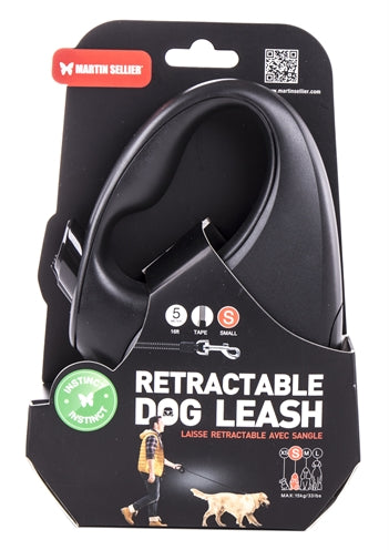 De Martin Rollijn Instinct Tape Zwart S 5 meter is een handige looplijn voor de hond met rolmechanisme voor meer vrijheid. Deze lijn bestaat uit een comfortabel handvat met daarin een lange platte lijn op een rolmechanisme. De hond kan de lijn uittrekken tot 5 meter en heeft zo meer vrijheid en ruimte om te lopen. De lijn kan desgewenst vastgezet worden op een bepaalde lengte met het D-lock systeem. De musketonhaak voor bevestiging aan de halsband of het tuig is van chroom voor stevigheid en duurzaamheid en het Martin-logo op de zijkant is reflecterend. Deze rollijn is geschikt voor honden tot 15 kg.