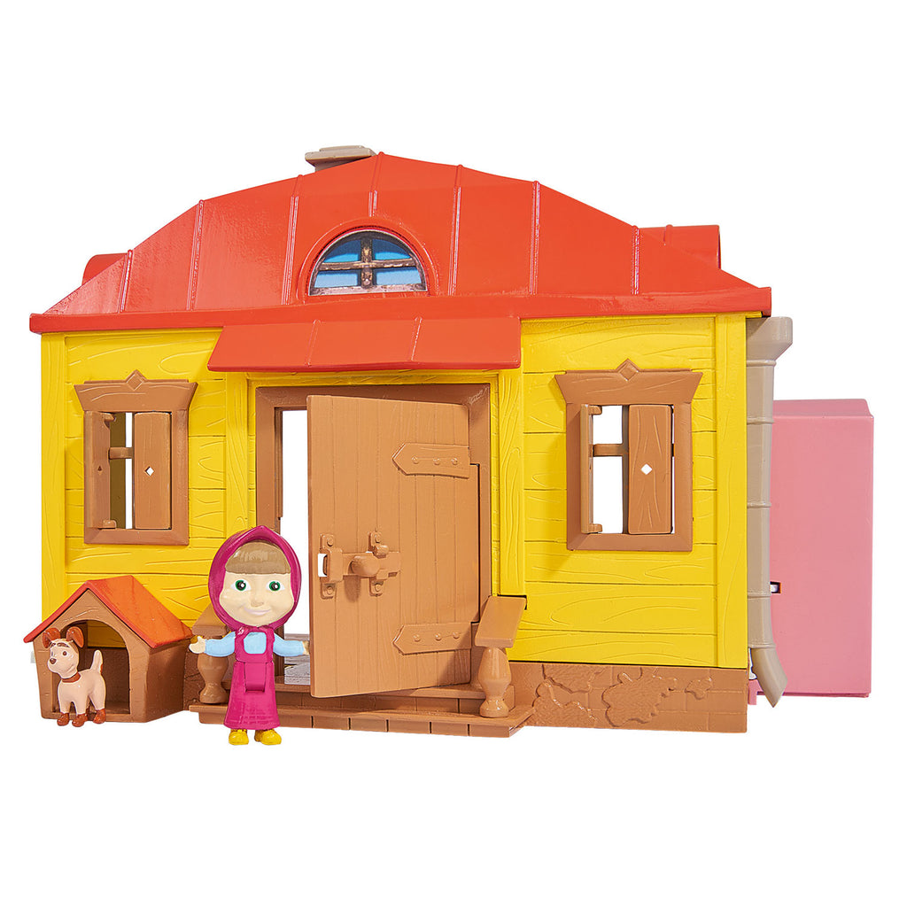 Speel de avonturen van Masha en haar huisdieren na in Masha's huis! Deze speelset bevat de het bekende huisje en het speelfiguur van Masha. Klap het huis open en je bent binnen! Zet de meubeltjes zoals een schommelstoel, een kaptafel en een grote kist in de ruimte en je bent klaar om te spelen! Samen met haar pup, een beer, de pop en haar blokken beleeft Masha de leukste avonturen! In het hondenhok voor het huis waakt het hondje wanneer je er eventjes niet bent. De speelset is gemaakt van stevig kunststof.