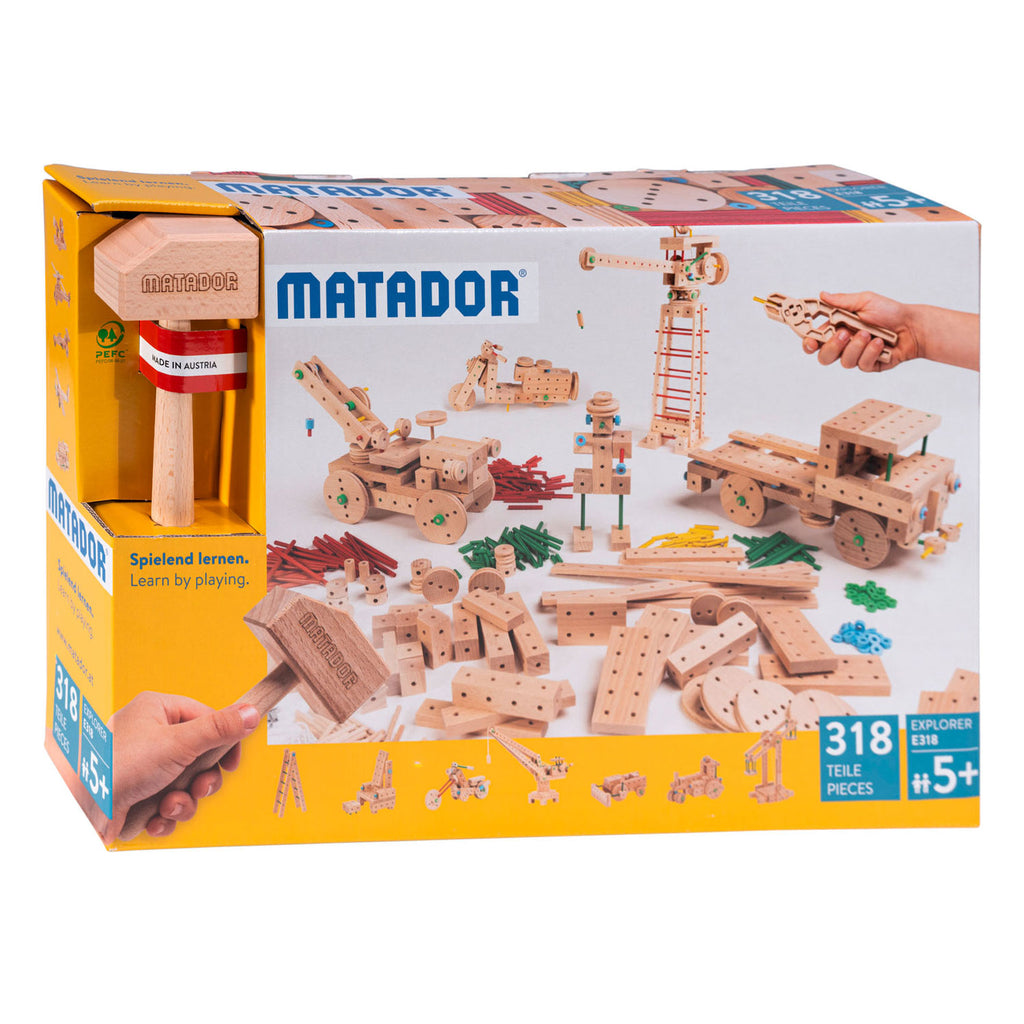 Matador Explorer E318 Constructieset Hout, 318dlg. Inclusief 71 constructie-ideeën.