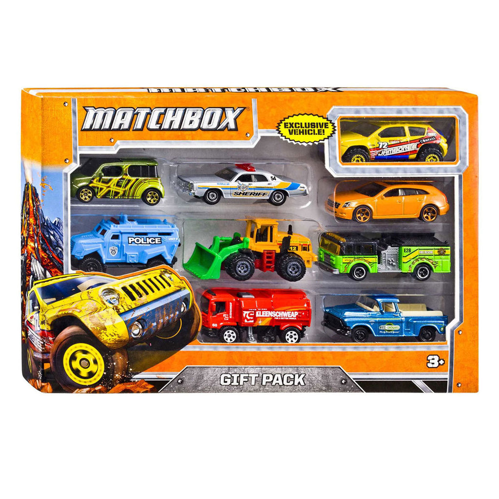 Het assortiment cadeausets bevat een scala aan metalen Matchbox voertuigen voor urenlang speelplezier! Elke verpakking bevat een exclusief voertuig met decoraties die je nergens anders vindt in het assortiment van Matchbox! Negen geweldige auto's in elke set. Verzamel alle sets en presenteer je fantastische wagenpark! Elke set is apart verkrijgbaar en niet overal leverbaar. Niet te gebruiken met sommige Matchbox sets Afwijkende kleuren en versieringen mogelijk.