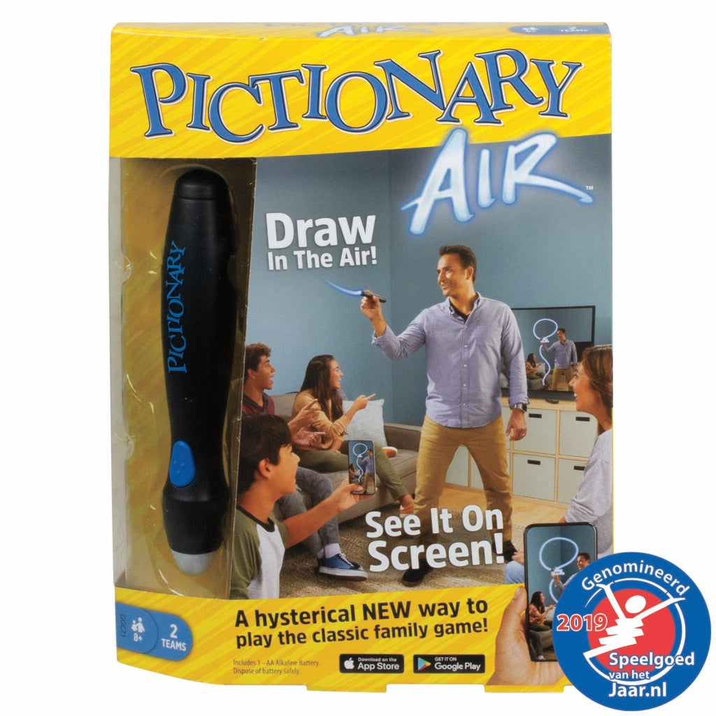 Een hysterische versie van het klassieke tekenspel voor de hele familie! Teken in de lucht en de tekening verschijnt op je apparaat: zo heb je Pictionairy nog nooit gespeeld! Download de Pictionary Air? app op je smartphone of tablet om direct te beginnen. Richt de camera die in de app zit op de tekenaar en hij zal samen met de schets op het apparaat verschijnen. De oplichtende punt van de speciale Pictionary Air? pen wordt geregistreerd door de app. Om nog harder te kunnen lachen verbind je je telefoon met je tv. Pak dus snel een kaart en laat je team raden wat je tekent!