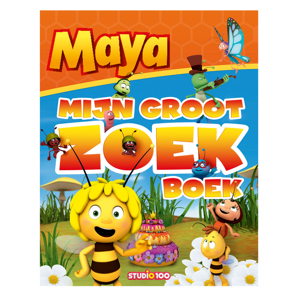Wat gebeurt er allemaal in de wereld van Maya? Wat is er te doen in de bijenkorf? In dit grote Maya zoekboek leert je kind voorwerpen benoemen en terugvinden in de tekeningen. En er zitten ook nog leuke telopdrachten in. Ga mee op ontdekking in de wereld van Maya en haar vrienden. Let op: er staat een drukfout in het zoekboek. Op de pagina van de bloemenweide staat een viool afgebeeld. Dit object is echter niet te vinden in de zoekafbeelding.