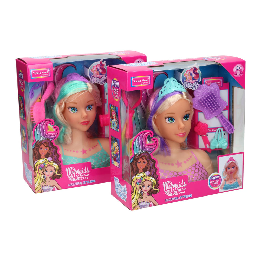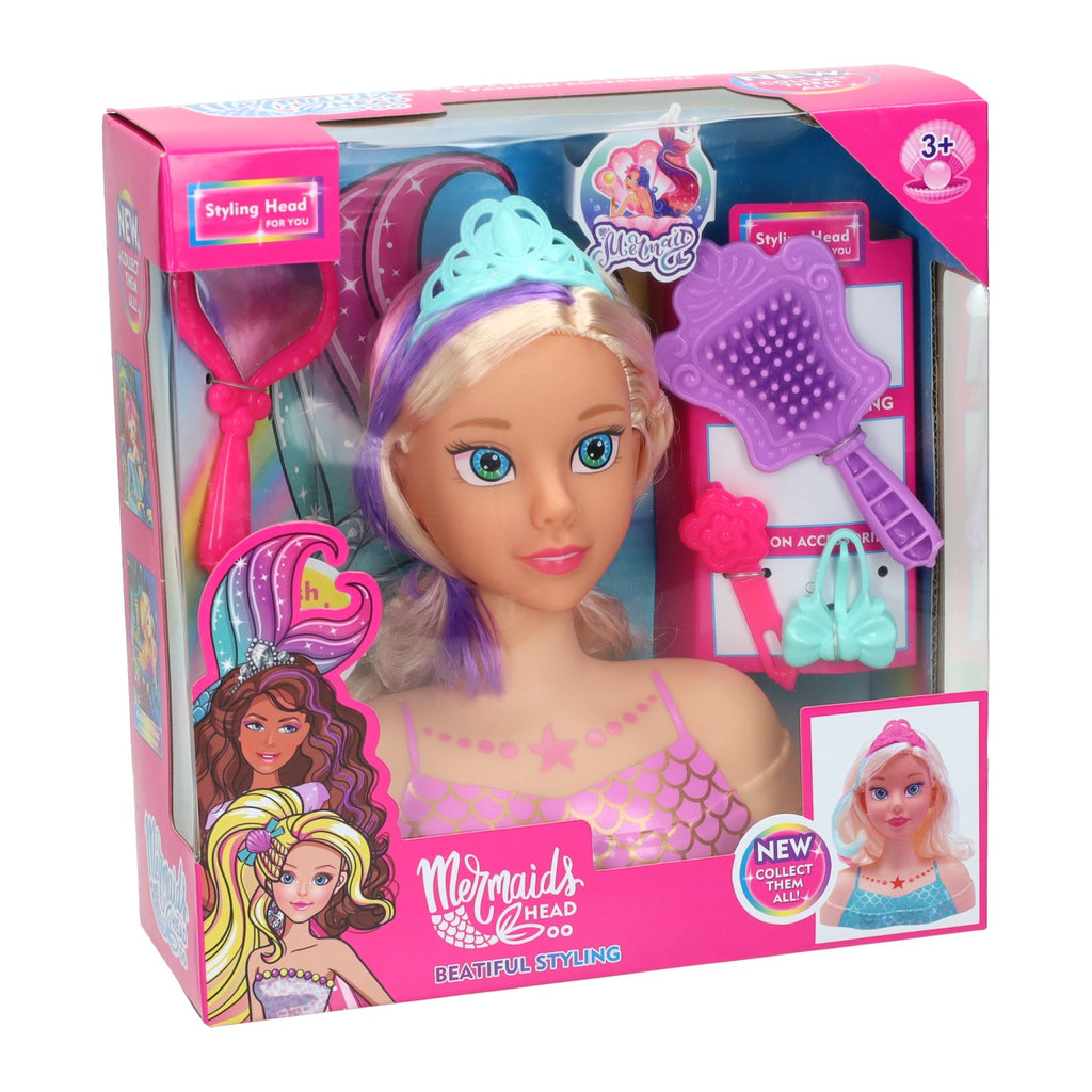 Zeemeermin kappop met accessoires. Deze kappop heeft blonde haren met gekleurde plukken en wordt geleverd met accessoires zoals een föhn, haarborstel, knipjes en spiegel. Inhoud kan variëren. Geschikt voor kinderen vanaf 3 jaar.