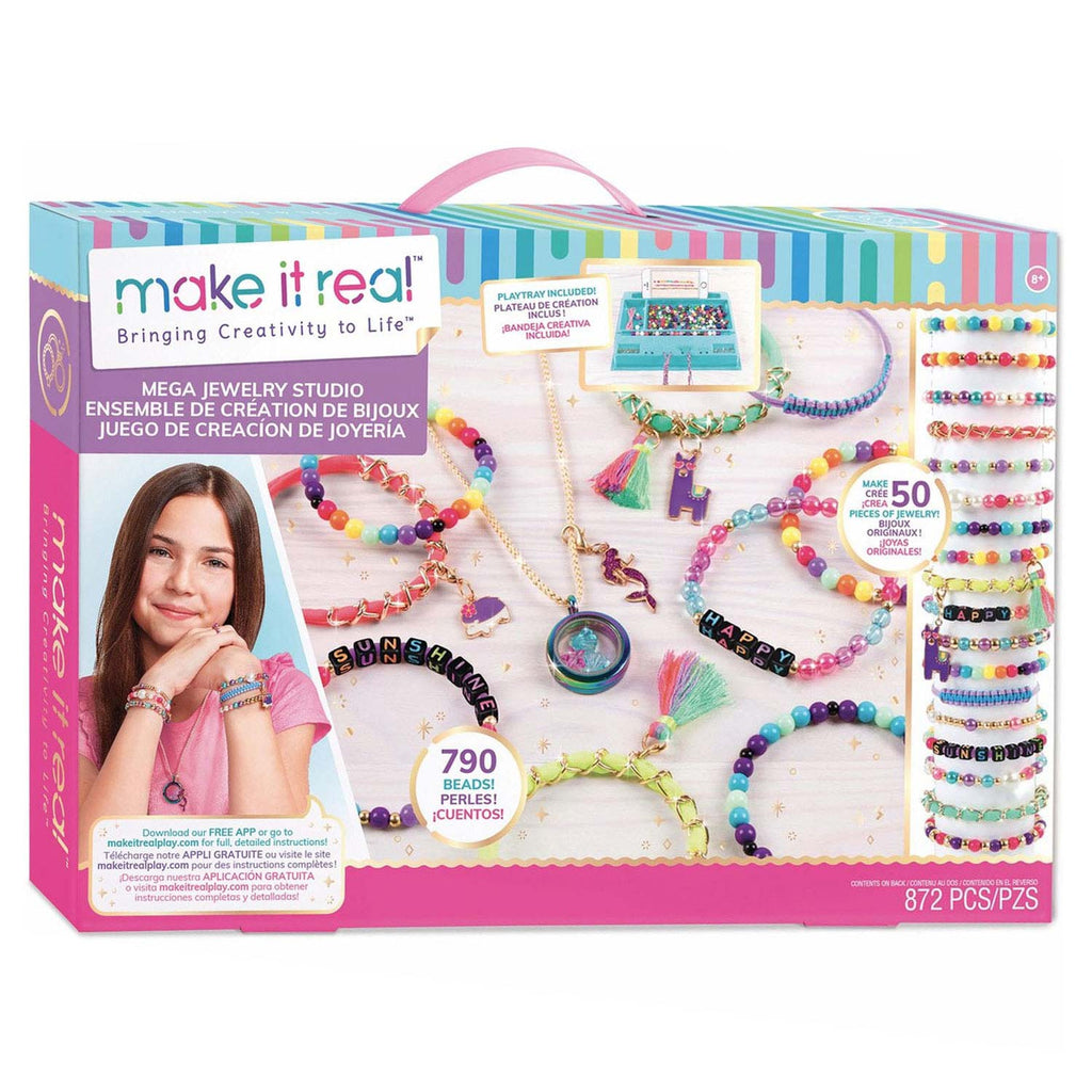 Creativiteit is grenzeloos met deze Mega Sieradenstudio set, gevuld met alles wat je nodig hebt om tot 50 verschillende sieraden te maken! Het bevat 850 mix&match kralen, levendige koorden en een mooie bewaardoos om het allemaal perfect georganiseerd te houden. Maak alles wat je maar kunt bedenken - van armbanden en kettingen tot flitsende haaraccessoires.