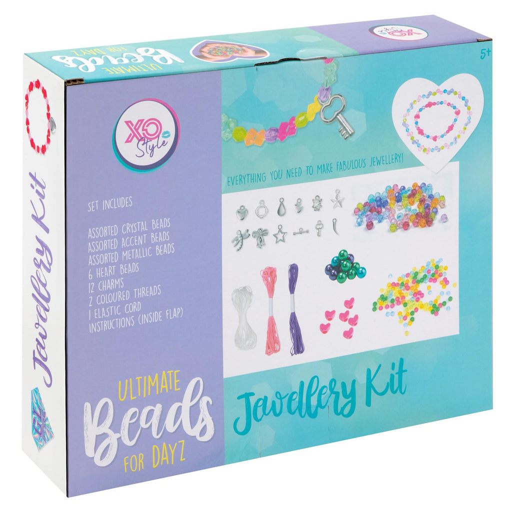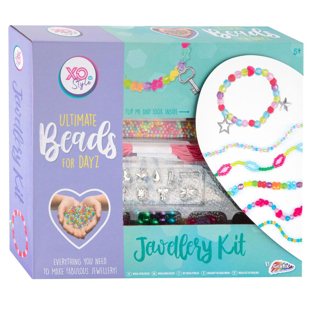 Mega juwelen knutselset. Inhoud: kristalkralen, ronde kralen, metallic kralen, 6 hartjesvormige kralen, 12 bedeltjes, 2 gekleurde koordjes, 1 elastiek touw, instructies. Geschikt voor kinderen van 5 tot 8 jaar oud.