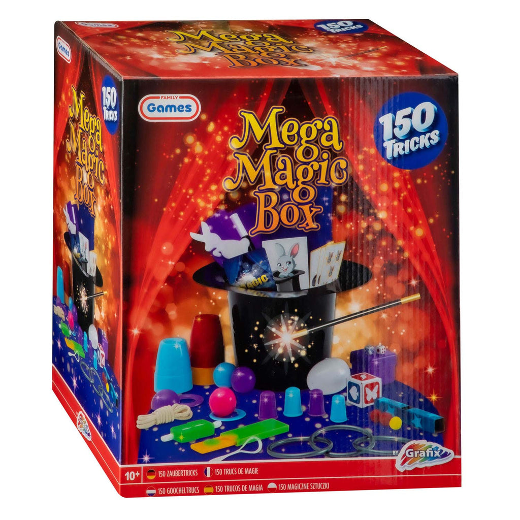 Deze doos bevat alles wat een beginnende goochelaar nodig heeft om het publiek te verbijsteren. Met de inhoud van dit pakket kun je 150 verschillende goocheltrucs vertonen. De doos bevat zelfs een hoge hoed! Geschikt voor kinderen vanaf 10 jaar.