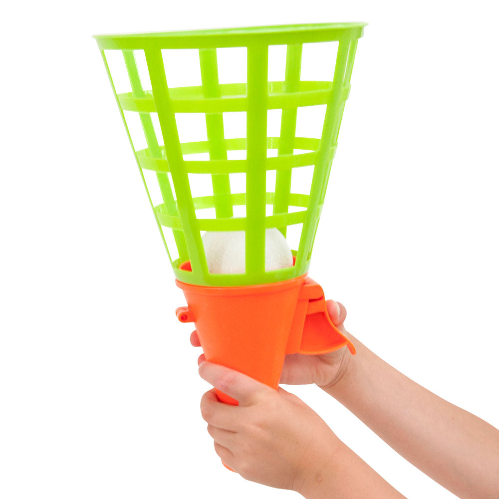Schiet het balletje over met deze mega vangbeker en probeer hem door de andere weer op te laten vangen. Inhoud: 2 mega vangbekers en 1 balletje.