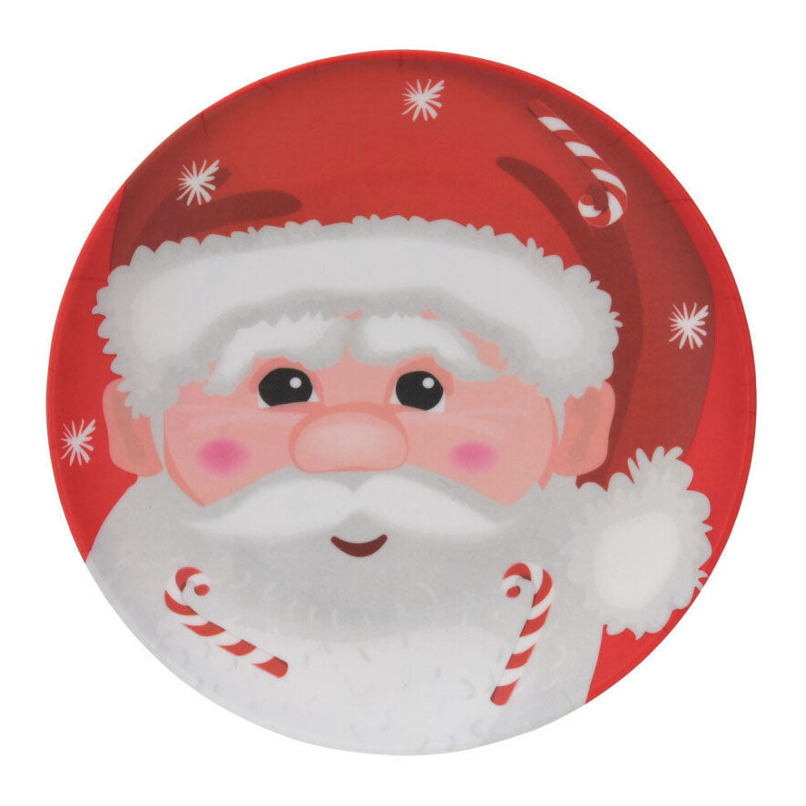 Melamine kerstbord met een doorsnede van 21 cm en licht opstaande randen. Hittebestendig tot 70 graden, kan in de vaatwasser.