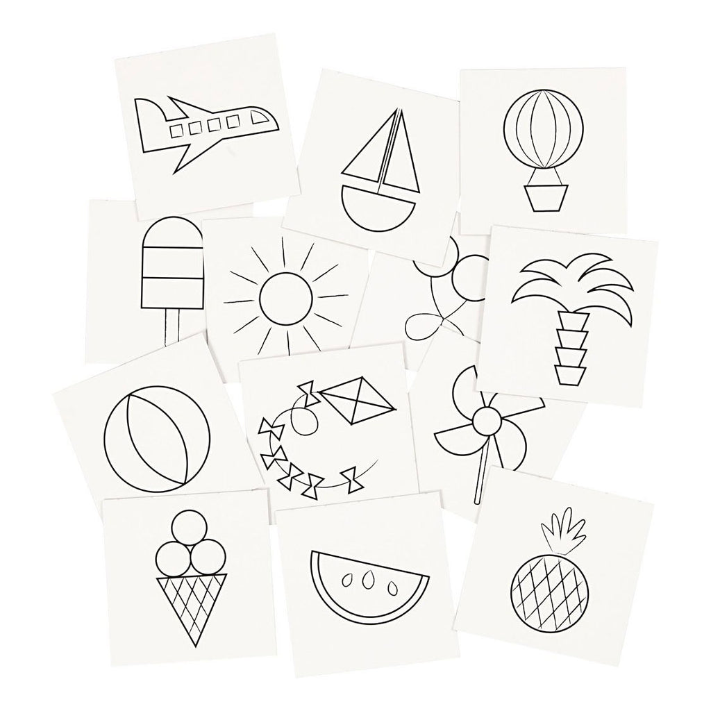 Memory spel van stevig karton met 2x13 verschillende, voorgedrukte motieven