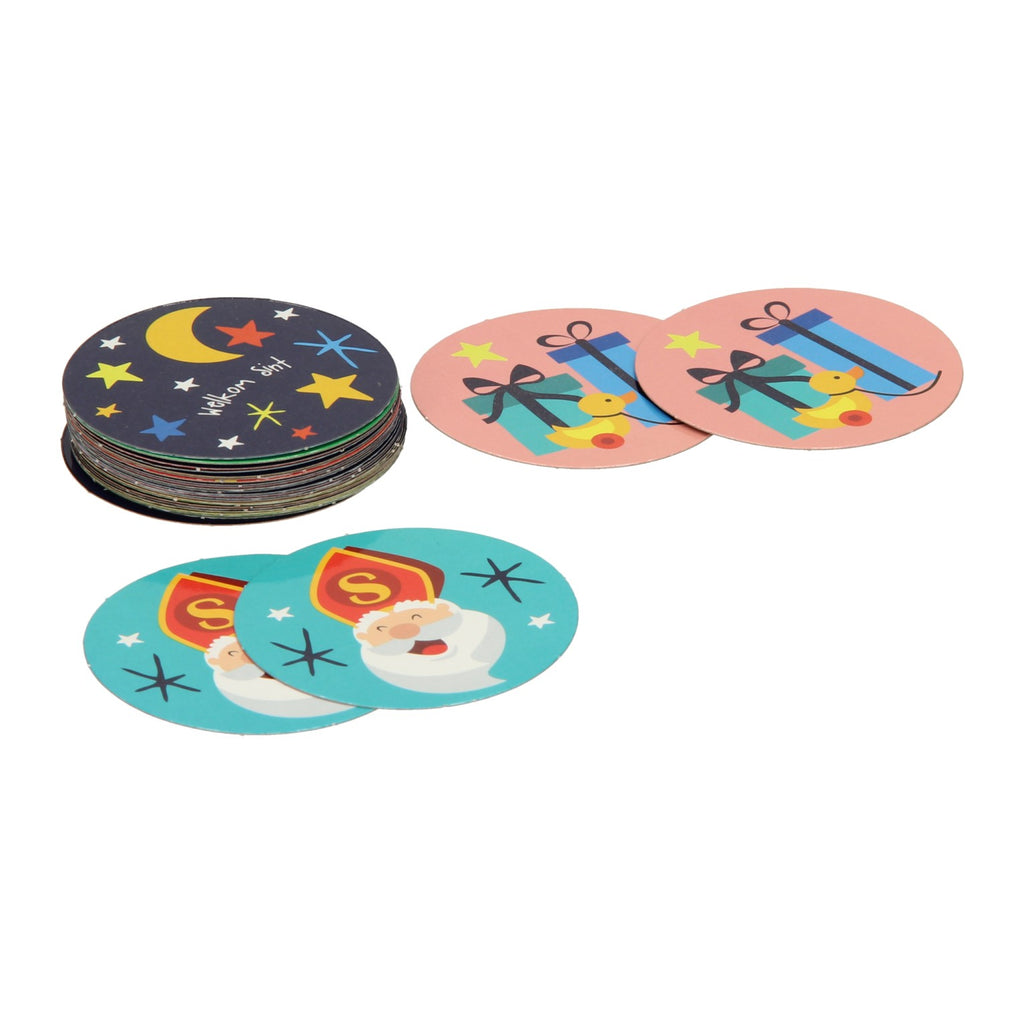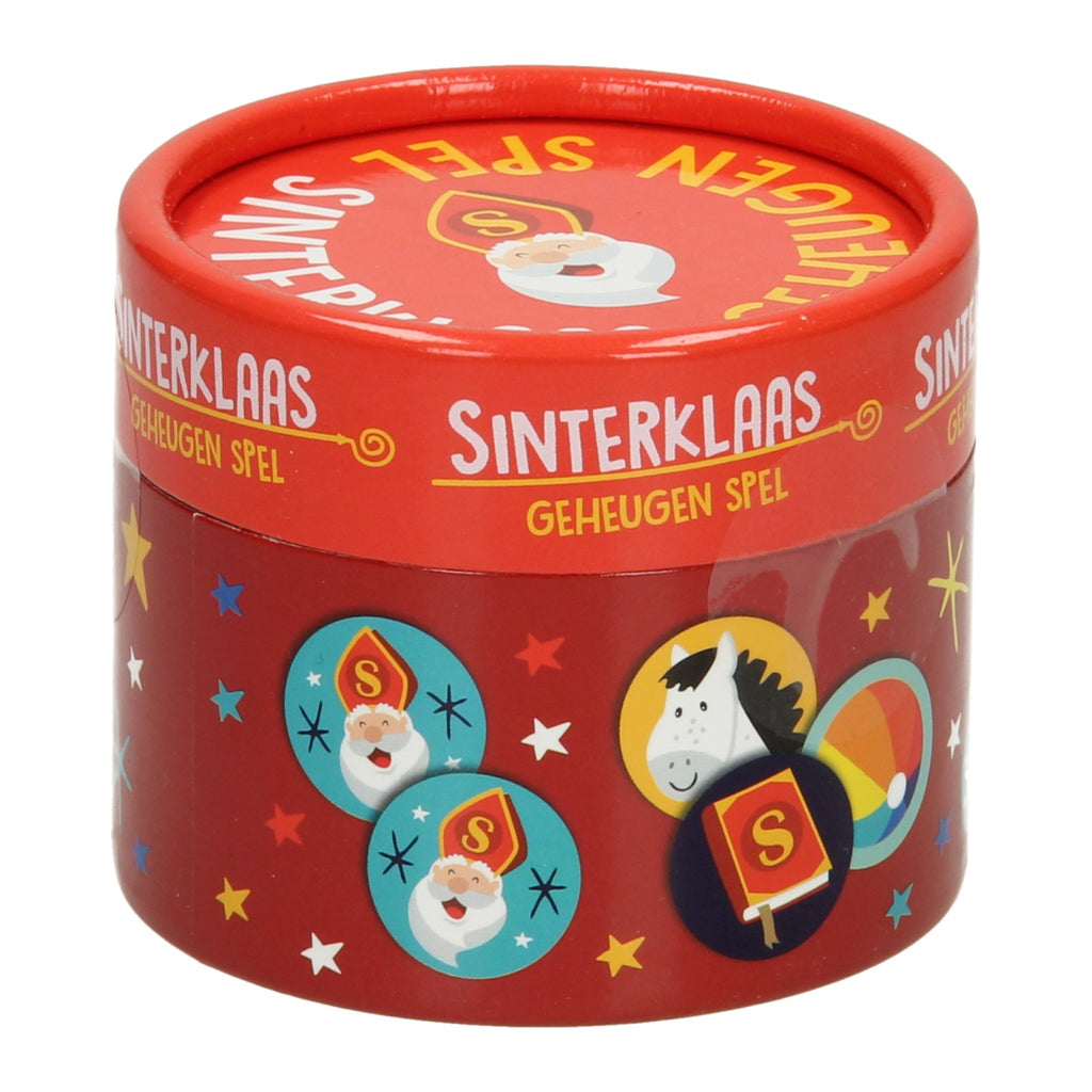 Memospel met ronde kaartjes van vrolijke sinterklaasafbeeldingen. Niet geschikt voor kinderen jonger dan 3 jaar oud.