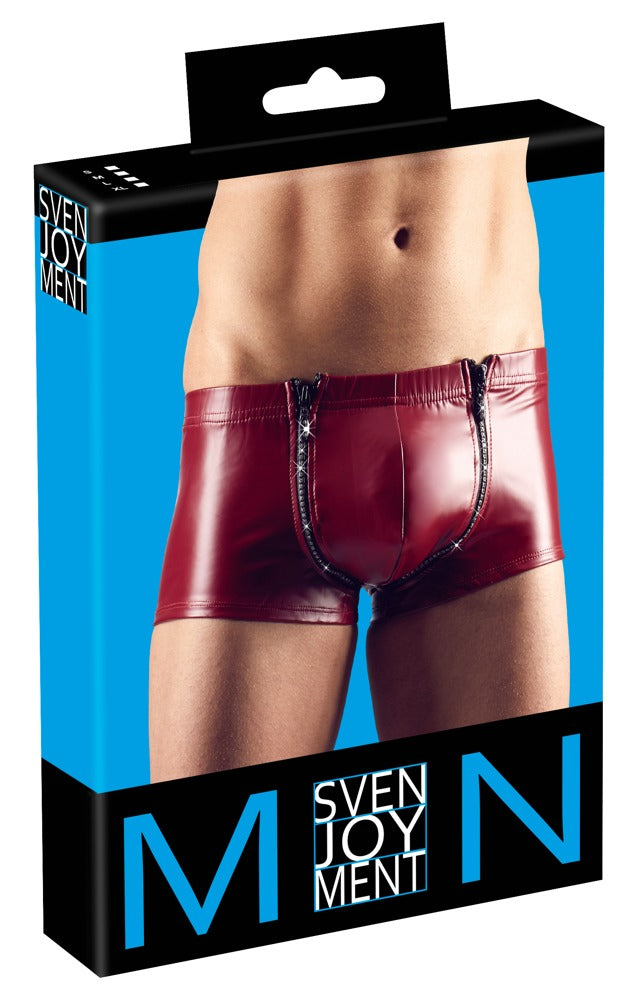 Pants made out of trendy matte material. The zips in the crotch area means that the penis can be presented in the best way possible. Rhinestones emphasise the crotch area even more.