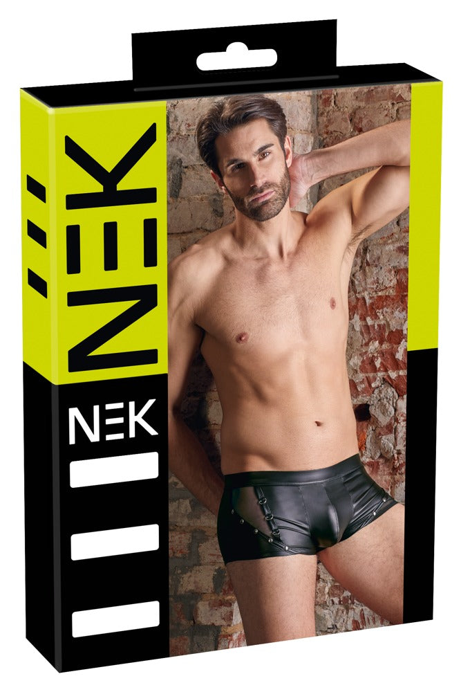 Fashionable pants in stretchy matte look that also fascinate with their wedge-shaped powernet inserts and press studs on the side seams. The pants also have another decorative strip of material with rings on one side that complete the cool look.