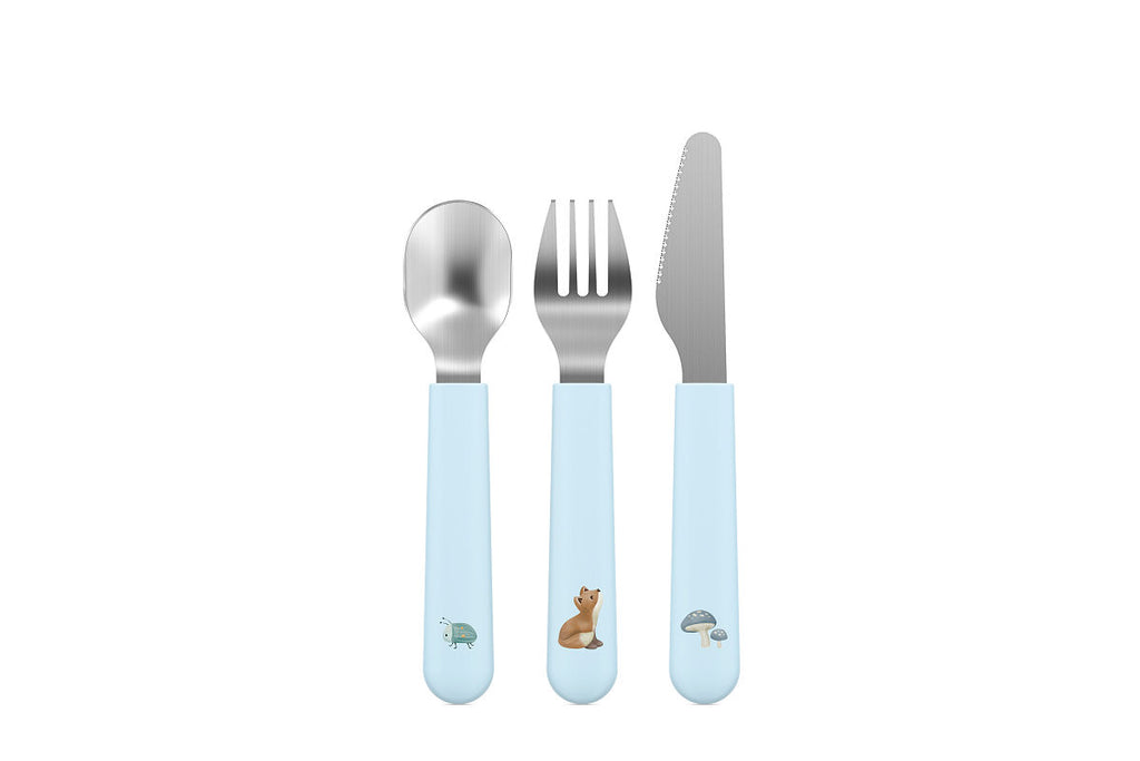 De kinderbestekset bestaat uit een vork, mes en lepel.