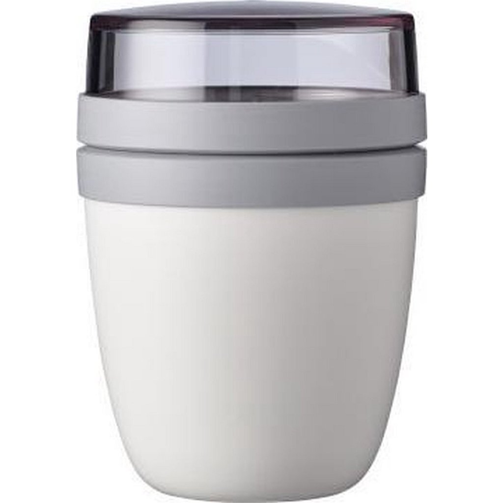 De lunchpot mini inwit is ideaal voor onder andere yoghurt met muesli of soep met croutons. Twee slimme compartimenten, één stevige pot. Dankzij de twee verschillende compartimenten blijven je ingrediënten lekker gescheiden. Deze kleine yoghurtbeker is dankzij zijn formaat ook ideaal voor je zoon of dochter, die neem je namelijk makkelijk mee naar school! De inhoud van de bovenste transparante container is 120 ml, dit betekent dat er ongeveer 50 gram muesli of fruit in past. De capaciteit van de onderste container is 300 ml. Lekt niet in de tas. Mag in de vaatwasser. Mag in de diepvries. Mag in de magnetron. Diameter 9,1 cm en hoogte 12,8 cm.