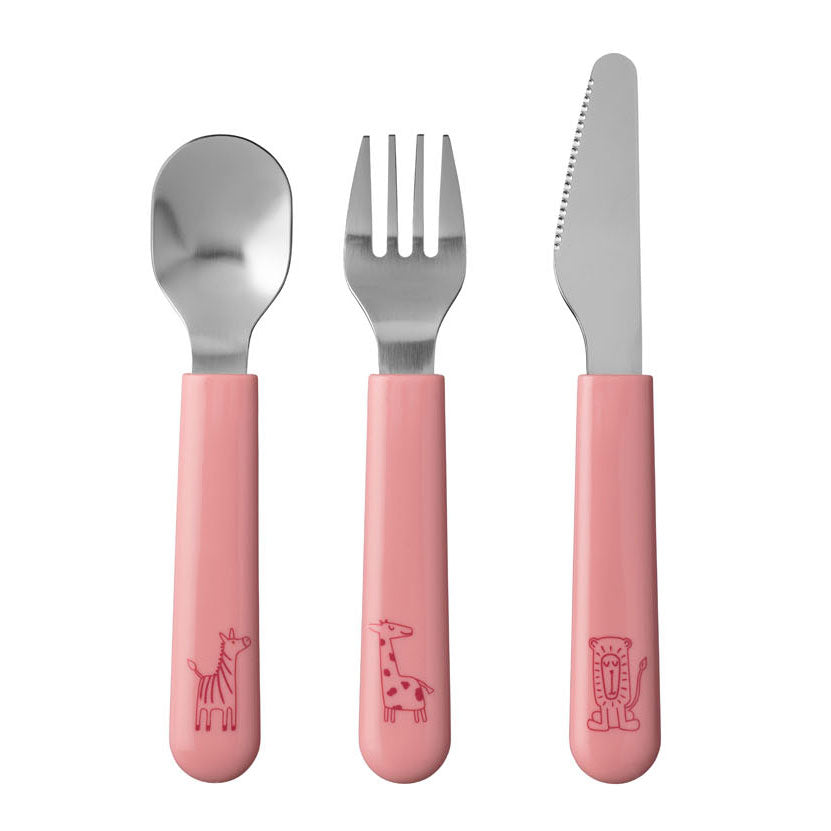 Jouw kleintje wil alles doen wat jij ook doet. Met mes en vork eten hoort daar ook zeker bij! De bestekset Mio, in de kleur deep pink, is dan ideaal. Het setje bestaat uit een vork, mes en lepel. Voor de veiligheid is het mes slechts aan één kant voorzien van een snijkant. Het kunststof handvat zorgt ervoor dat jouw zoon of dochter het bestek goed vast kan houden.
