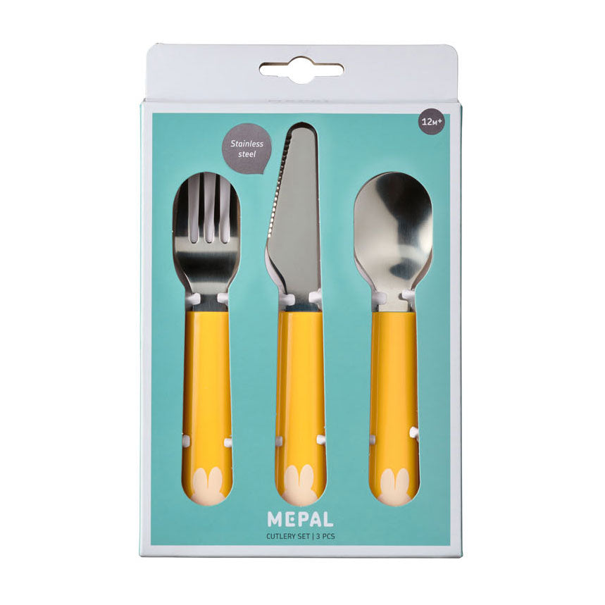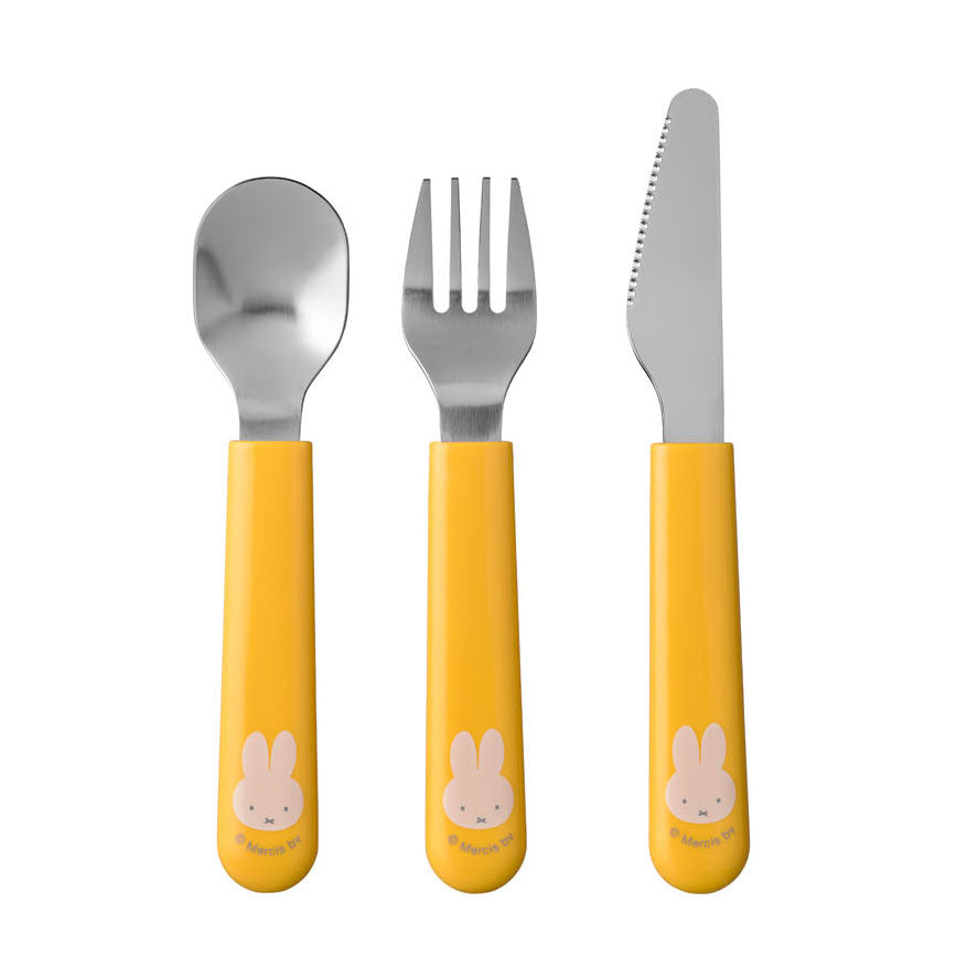 3-delige Mepal Nijntje kinderbestekset. De set bestaat uit een vork, mes en lepel. Kleur: geel.