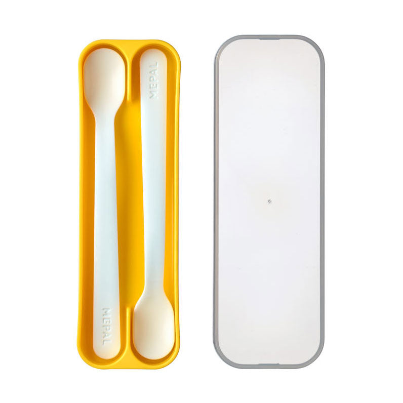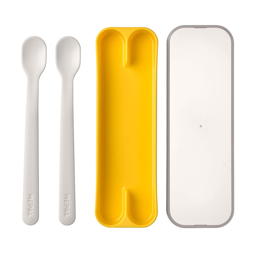 Speciaal voor hongerige hummeltjes is er nu de babylepel Mio in yellow. De lepel wordt geleverd als set van twee in een handig opbergdoosje. Makkelijk mee te nemen dus! De babylepel is smal en ondiep, zodat het voor de allerkleinsten ook makkelijk eet. Dankzij de lange steel haal je ook het allerlaatste beetje uit een potje babyvoeding.