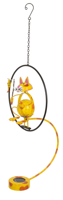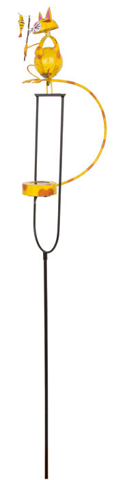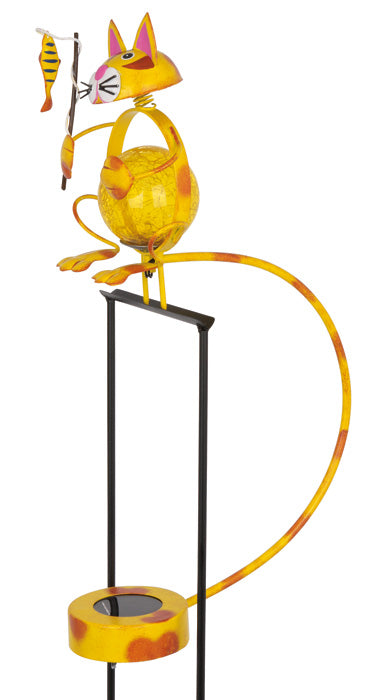 Bloembedden en grote potten geven een bewegende versiering aan de planten met deze kleurrijke katachtige uit fijn bewerkt messing en beschilderd metaal! De kop wiebelt grappig en de gele glazen bol wordt in het donker verlicht door een LED-lamp. Plaats de zonnecellen in het balansgewicht om stroom te leveren! Op de zwart gelakte tafels of op de ring (21 x 23,5 x 44 cm) die op de hellingen is geplaatst - deze kleine tijger zal de toeschouwer in verrukking brengen als hij gelijkmatig heen en weer stuitert.