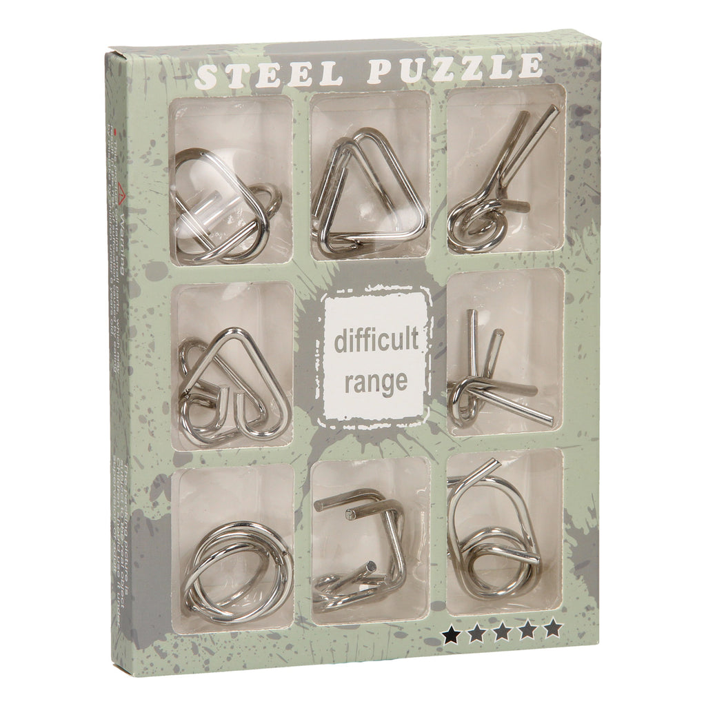 Ben jij een puzzel expert? Probeer dan deze metalen breinpuzzels op te lossen. Maak de onderdelen van de puzzels los en probeer daarna de onderdelen weer samen te voegen. De set bestaat uit negen verschillende breinpuzzels. Moeilijkheidsgraad 1 ster.