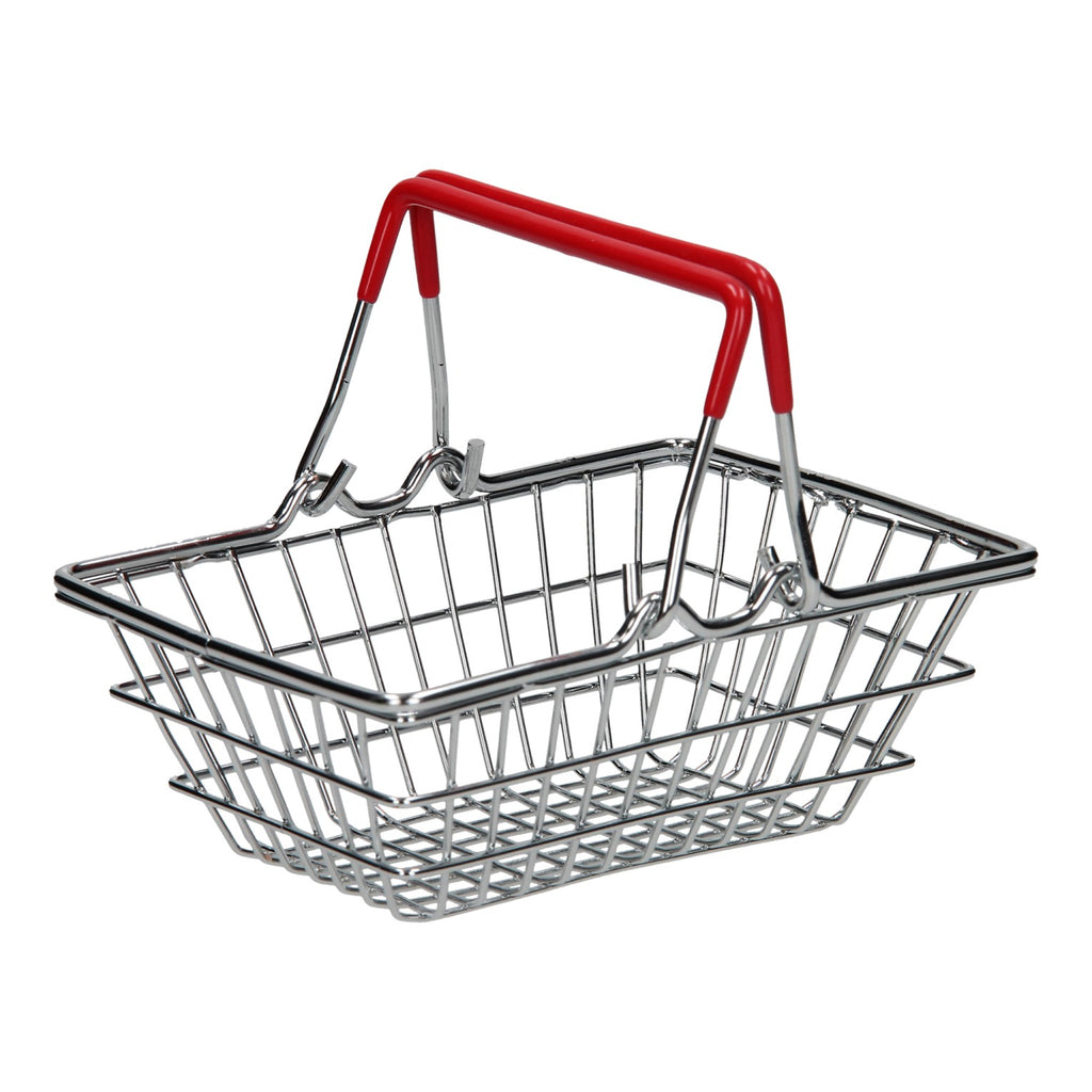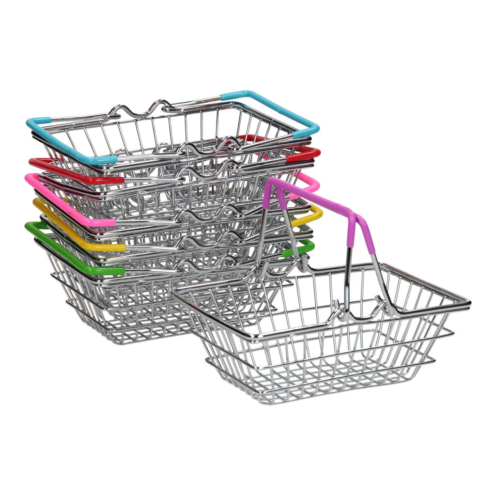 Wat in een speelgoed supermarkt niet mag ontbreken zijn natuurlijk de winkelmandjes. Je moet natuurlijk je boodschappen tijdens het shoppen wel met je meedragen. Deze metalen winkelmandjes zien er sterk en stevig uit en hebben gekleurde hengsels.