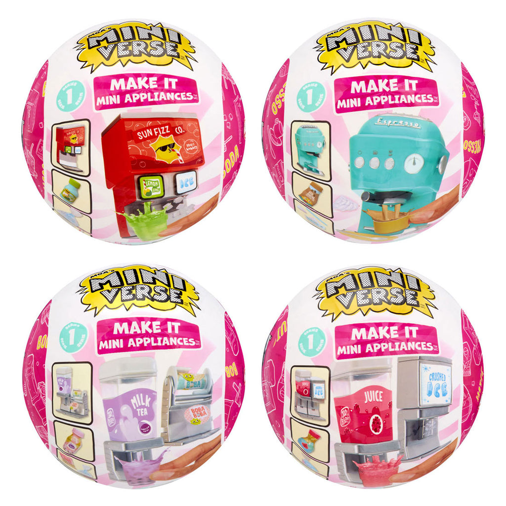 MGA's Miniverse™ Make It Mini Appliances™ met nieuwe Make It Mini™-manieren! Gloednieuwe mini-apparaten die echt werken! Gebruik deze apparaten om je favoriete Miniverse Make It Mini Food™-drankjes te maken, hard te laten worden en te showen.