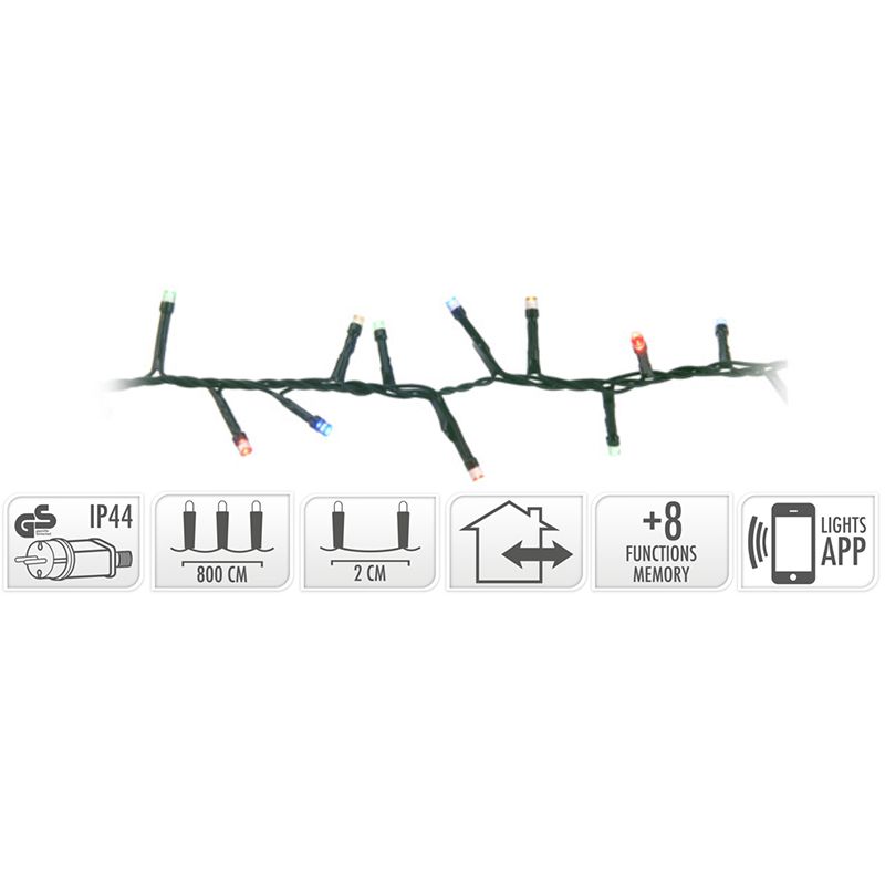 LED clusterverlichting met 800 LED lampjes en een gratis app om de lampjes mee te besturen. De snoerlengte is 8 meter lang en is geschikt voor binnen en buiten.
