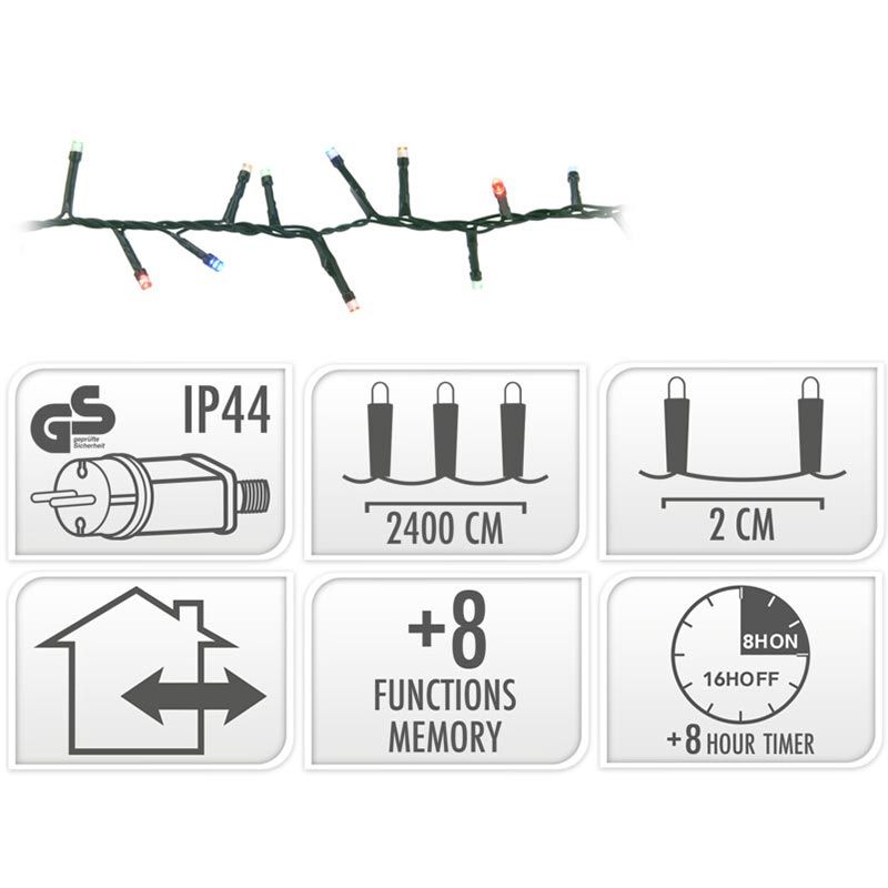 Kerstverlichting van 24 meter met 1200 LED lampjes, geschikt voor een kerstboom van 300 cm, voor binnen en buiten gebruik