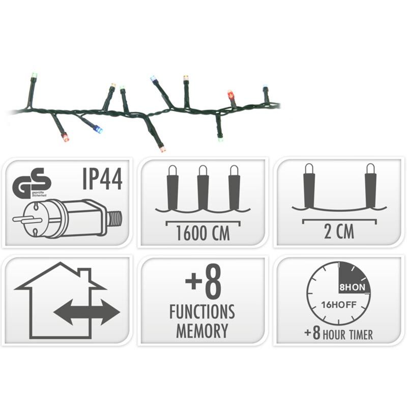Kerstverlichting van 16 meter met 800 LED lampjes, geschikt voor een kerstboom van 240 cm, voor binnen en buiten gebruik