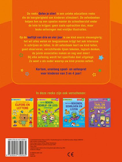 De reeks Oefen je slim! is een unieke educatieve reeks die de leergierigheid van kinderen stimuleert. De oefenboeken helpen hen op een speelse manier de schoolleerstof onder de knie te krijgen: geen saaie opdrachten dus, maar leuke oefeningen met vrolijke illustraties.
