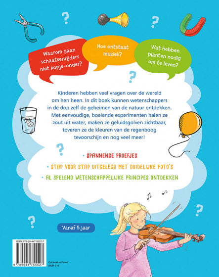 De leukste wetenschappelijke proefjes voor kinderen! Waarom gaan schaatsenrijders niet kopje-onder? Hoe ontstaat muziek? Wat hebben planten nodig om te leven?