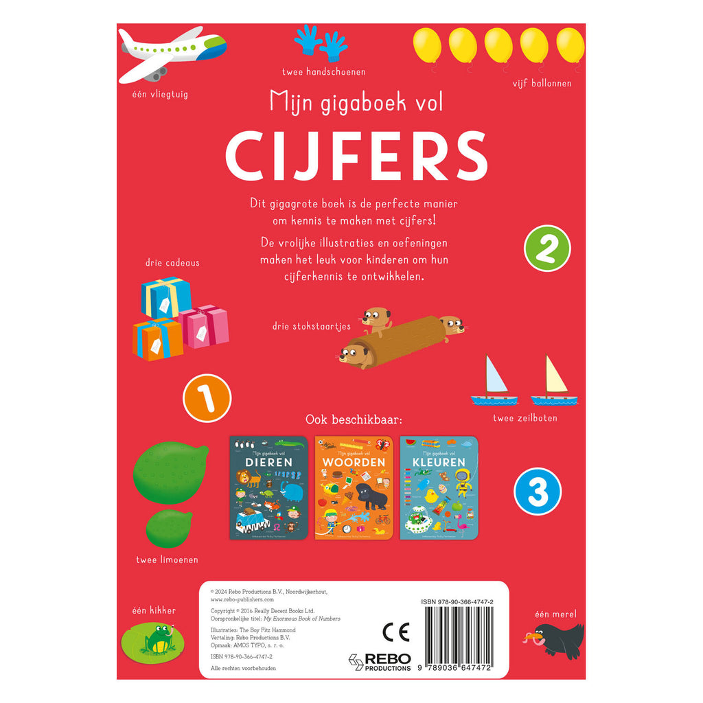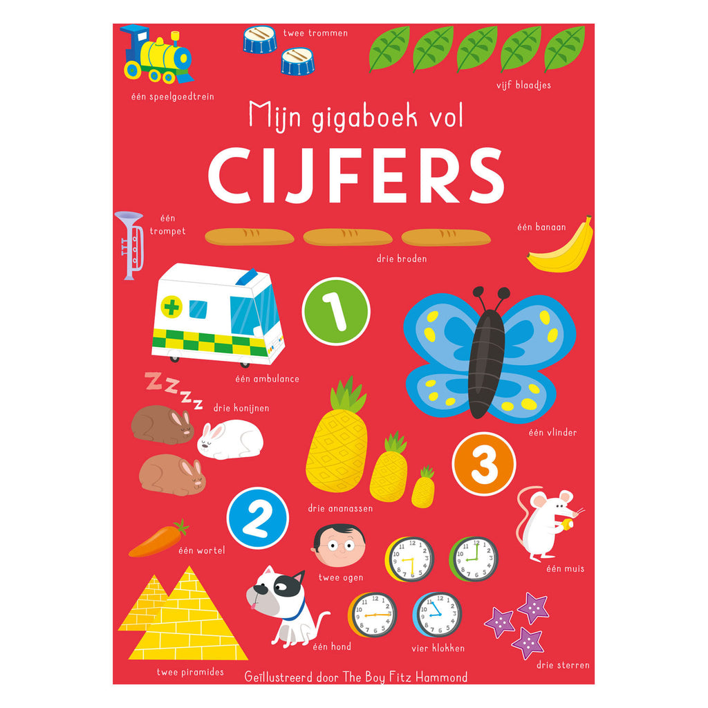 Dit gigagrote boek is de perfecte manier om kennis te maken met cijfers! De vrolijke illustraties en oefeningen maken het leuk voor kinderen om hun cijferkennis te ontwikkelen.