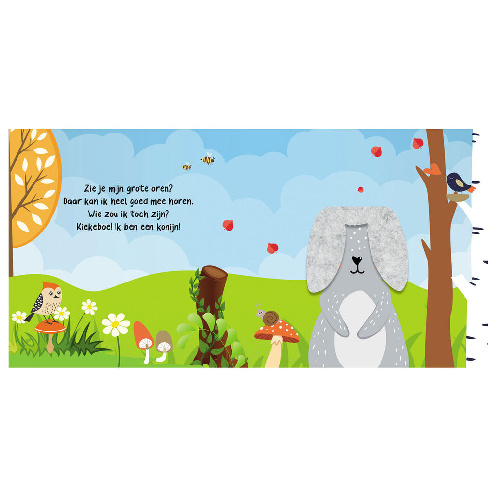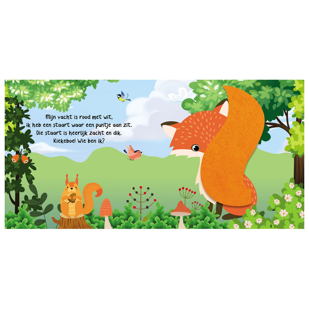 Zoek samen naar de verstopte bosdieren achter de vrolijke vilten flapjes. Leer spelenderwijs de bosdieren kennen door een verhaaltje. Wie zit er verstopt achter die grote staart? Het is de eekhoorn! Het stevige karton maakt dat het boek tegen een stootje kan.