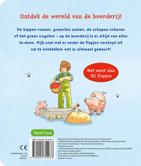 Ontdek de wereld van de boerderij met dit leuke kijkboek! De kippen voeren, groenten zaaien, de schapen scheren of het graan oogsten - op de boerderij is er altijd van alles te doen. Kijk snel wat er onder de flapjes verstopt zit om te ontdekken wat er allemaal gebeurt!