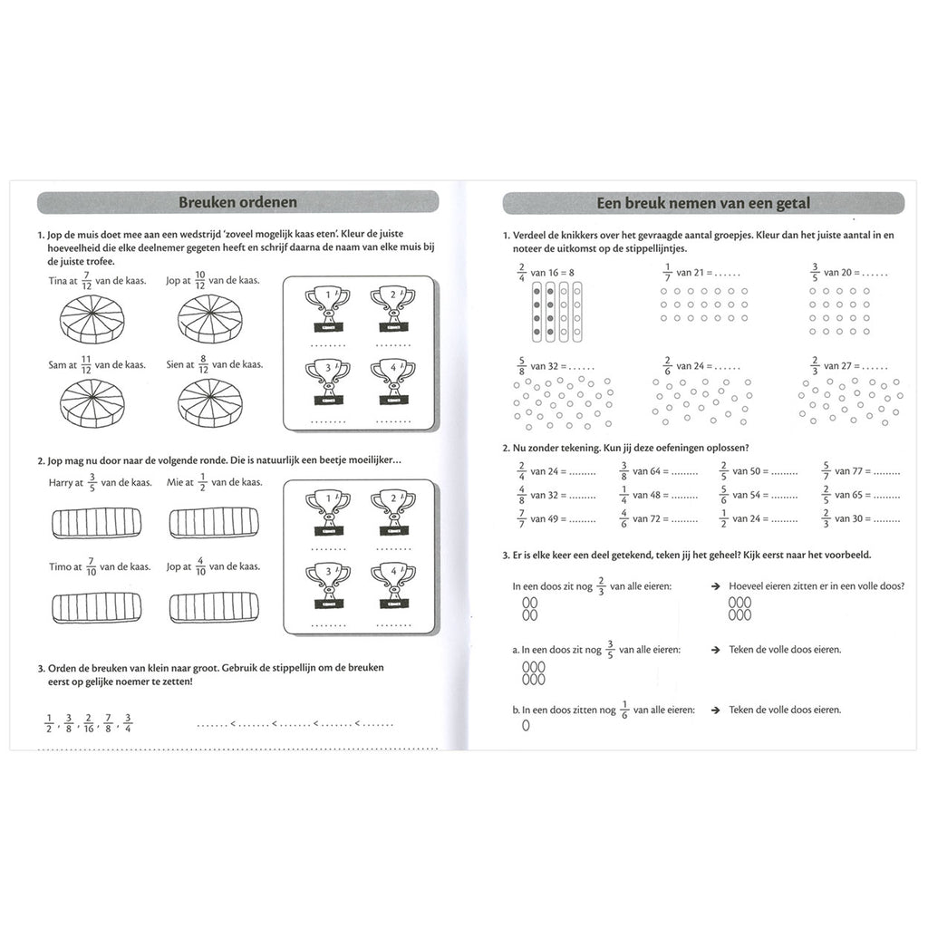 Dit oefenboek Breuken bevat speelse en gevarieerde oefeningen die aansluiten bij de leerstof van de basisschool. Zo kan uw kind thuis verder inoefenen wat het in de klas geleerd heeft en op die manier de leerstof sneller onder de knie krijgen! Uw kind kan de oefeningen bovendien zelfstandig maken en achteraf zelf de oplossingen controleren. In dit boek komen onder andere de volgende onderwerpen aan bod: een breuk nemen van een getal, rekenverhalen oplossen, breuken omzetten in kommagetallen, breuken optellen, aftrekken, vermenigvuldigen en delen en nog veel meer! Veel rekenpret! In het boek zit bovendien een leuke en overzichtelijke poster over breuken!